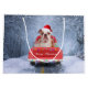Ein Weihnachtswagen, der durch den Schnee fährt und Weihnachtsgeschenke und den englischen Bulldoggen liefert. Eine perfekte Weihnachtsgeschenkidee für jemanden, der diesen Hund züchtet.