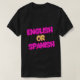 Feiern Sie die Zweisprachigkeit mit diesem einzigartigen "Englisch oder Spanisch" T - Shirt! Ideal für Sprachfreunde, Reisende und alle, die die Schönheit der Kommunikation in mehreren Sprachen Lieben. Dieses Shirt ist eine lustige und stilvolle Art, Ihre Fähigkeit zu zeigen, sowohl Englisch als auch Spanisch mit Leichtigkeit zu navigieren. Egal, ob Sie lehren, lernen oder einfach nur stolz auf Ihre zweisprachigen Fähigkeiten sein, dieses Design ist ein Gesprächsstarter. Er ist aus hochwertigem Stoff gefertigt und bietet Komfort und Langlebigkeit. Tragen Sie Ihre sprachliche Vielseitigkeit mit Stolz!