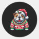 English Bulldog Dog Ugly Sweater Santa Hat Christm Runder Aufkleber