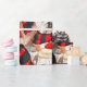 Dieser englische Bulldog ist in einem rot-schwarz gestreiften Winterschal für die Ferienzeit gekleidet und schafft ein lustiges Hundsmuster, um die Weihnachtsgeschenke des Hundefreundes zu verpacken.