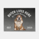 English Bulldog Personalisiert Dog Liebhaber willkommen vor der Tür. Diese Begrüßungsmatte kann mit dem Namen Ihres Hundes personalisiert werden, der Slogan kann auch geändert werden oder Sie können ein Foto Ihres eigenen Hundes verwenden (stellen Sie sicher, dass es transparent ist). Im Text steht: Butch wohnt hier... Alle Leckereien begrüßen das Bearbeiten des Designs, um den Schriftart, die Farben und die Hintergrundfarbe zu ändern. Verwenden Sie beim Ersetzen des Hundes ein transparentes Bild. Ein wunderbares Geschenk für ein Party, Ferien, Hundefreunde und für jeden Anlass.