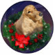 Umgeben von einem Weihnachtskranz und Set gegen einen dunkelblauen Sternenhimmel. Frieden, Freude, Liebe. Wunderschöne Urlaubskunst für englische Cocker Spaniel Liebhaber. Weihnachtsgeschenke, die sie schätze