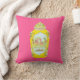 Dieses Kissen besticht durch eine originelle Aquarellmalerei der Künstlerin Anne Harwell aus einer antiken englischen Porzellandose, die im Detail mit Gelb und Grüntönen auf einem tiefrosa Hintergrund verziert ist.