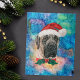 Der englische Mastiff Breed Dog Weihnachten hat eine Aquarellfarbe eines englischen Mastiffs mit einem roten Weihnachtshut, einem roten Weihnachtskragen und einer galaxischen Wasserfarbe.