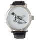 Uhr, Klassische Damenuhr mit schwarzen Lederarmband