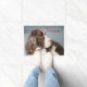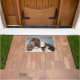 Dies ist eine Türmatte mit einem Original-Foto einer gut aussehenden Leber und Weiß Englisch Springer Spaniel mit einem blau-grauen Hintergrund