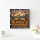 Engraved Deer Pair Sunset Forest Quadratische Wanduhr