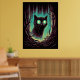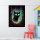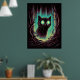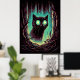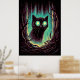 Eine schwarze Katze mit durchdringenden grünen Augen, Set in einem geheimnisvollen Wald. Haunting und unheimliche Tiere, die gruselige Katzen Liebe haben.