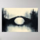 Dieses faszinierende Schwarz-Weiß-Kunstwerk stellt eine rätselhafte Brücke dar, die in Nebel gehüllt ist und sich perfekt in ruhigen Gewässern widerspiegelt. Die monochrome Palette erhöht die Tiefe und das Rätsel und erfasst die Stille und stille Eleganz der Natur. Ideal für diejenigen, die minimalistische, ruhige und abstrakte Repräsentationen der Schönheit der Natur schätzen.