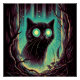 Eine schwarze Katze mit durchdringenden grünen Augen, Set in einem geheimnisvollen Wald. Haunting und unheimliche Tiere, die gruselige Katzen Liebe haben.