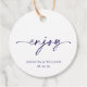 Fügen Sie Ihren Gastgeschenke Hochzeiten eine charmante letzte Touch mit diesem eleganten Rundtag hinzu, in dem das Wort "genieße" in einem anmutigen Marineschrift auf einem knackigen weißen Hintergrund steht. Personalisiert mit den Namen und dem besonderen Datum des Paares, verbindet dieses Design Einfachheit mit Romantik. Die Rückseite ist mit einem weichen blauen Blumenmuster geschmückt, das ein zartes und raffiniertes Aussehen verleiht. Ideal für Leckereien, Dankesgeschenke oder Dessertvorlieben bei Hochzeiten, Brautpartys und Verlobungen.