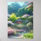 Treten Sie ein in eine Welt des Staunens, während Sie einen Geheimschrein entdecken, der in einem friedlichen Garten versteckt ist. Ein sanfter Bach fließt unter einer hübschen Steinbrücke, die mit zarten, rosa und weißen Blume den Garten schmückt.