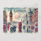 Hier ist die Reise-Postkarte im Aquarellstil mit London, wo Big Ben über einer regnerischen Straße hochragt, jetzt mit flüssigen Pinselstrichen bemalt. 🇬 🇧 🚌 ✨ Die Szene umfasst die roten Doppeldeckerbusse, die schwarzen Kabinen, die Telefonkabinen und die Leute mit Sonnenschirmen, die die Straße entlang laufen, die alle in sanften, blonden Farben dargestellt sind. Die nasse Straße reflektiert die Lichter der Stadt und schafft ein traumhaftes Ambiente. Der Text "Discover London" ist in eleganter, fließender Schrift mit einer Aquarelltextur, die ihm einen charmanten, europäischen Reisestil verleiht