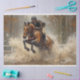 "Galoppieren durch den Herbst" Dieses dynamische Kunstwerk erfasst den aufregenden Moment eines Reiter und Pferdes, das durch das Wasser galoppiert, und schafft dramatische Glanzpunkte. Der in Reitbekleidung gekleidete Reiter und das mächtige Pferd im Mittelgang zeigen die Energie und Anmut des Reitens. Der herbstliche Hintergrund mit gefallenen Blätter und nackten Bäumen verleiht der Szene einen saisonalen Charme. "Galloping Through Herbst" verbindet wunderbar den Nervenkitzel des Reitsports mit der ruhigen Schönheit der Natur.