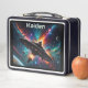 Der Moment, in dem ein Raumschiff von einer Raumstation oder einem Mutterschiff entockt wird, wird in dieser Lunchbox zum Thema "Weltraum" erfasst. Farbenfrohe Galaxien, Sterne und Planeten im Hintergrund vervollständigen die Szene. Ideal für alle, die Science Fiction, Weltraum und Weltraumforschung Lieben.