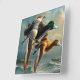 Enten, die über den Ozean fliegen, und ein kleines Quadratische Wanduhr