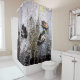 Gruppe von drei männlichen und weiblichen Stockenten in einem kalten Wasser eines Teiches spät im Herbst. Der Mix aus wilden Zweigen mit ein paar grün-gelben Blätter und dünnen Linien einiger Wasser-Pflanze malen in der Szene. Herbststimmung. Duschvorhang zu dekorieren Ihr Badezimmer für Spaß und gute Laune.