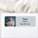 Diese friedliche Ente Erholungen auf einem Felsen, die auf das dunkelblaue Wasser schauen. Die braune Ente ist entspannt und genießt die Sonne. Schnell und einfach personalisieren Sie Ihre Informationen, um eine Art Adressetikett zu erstellen.