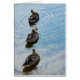 Ein Foto von drei Enten in einer Linie, die sich selbst pflegt.