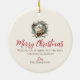 Ente mit Enten in einem rustikalen Weihnachtskranz mit Nadelkronen. Personalisiert (Jahr auf der Vorderseite und Text auf der Rückseite) Weihnachtsschmuck für Nutztiere, Entenliebhaber.
