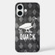 Dieses iPhone-Gehäuse, das sich an das exzentrische Individuum anlehnt, zeichnet sich durch einen Schwarz-Grauton-grungy-Raute-Druck aus, mit einem weißen Piktogramm einer Ente. Der anpassbare weiße Text enthält das Wort "QUACK". Ein rätselhaftes und unerklärliches Objekt!