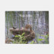 Das Foto einer Ente ist geschlossen, die Ente neigt sich auf einem friedlichen Teich unter den Schilfrohr.
