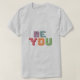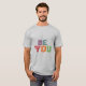 Das T-Shirt enthält den Text "Be You" in einer fett angelegten, auffälligen Schrift, die auf der Vorderseite deutlich sichtbar ist. Der Text könnte zentriert oder aus dem Mittelpunkt platziert werden, um ein dynamischeres Aussehen zu ermöglichen. Die Farbe des Textes kann eine einzelne, solide oder eine Farbkombination sein, um eine Anweisung zu erstellen. Das T-Shirt Design integriert den Text "Be You" auf kreative und spielerische Weise. Die Buchstaben können individuell mit einzigartigen Schriften, Farben oder Grafiken gestaltet werden. Der Teil "Be" kann in einem anderen Stil als "You" geschrieben werden, um die Betonung hinzuzufügen. Auf dem Hemd können auch zusätzliche Elemente zum Thema Individualität vorhanden sein, wie z.B. Schwirbeln, Plättchen oder kleine Illustrationen.