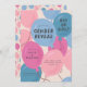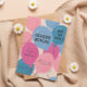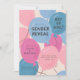 Das skurrile Geschlecht offenbart Party Einladung mit handgezeichneten rosa und blauen Ballons. Der Text sagt "Junge oder Mädchen" in einem der Ballons. Ideal für ein Gender-Enthüllungs-Party in jeder Jahreszeit.