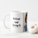 Feiern Sie Ihre Pensionierung mit der personalisierten Tasse "Remüde und Loving It", die eine stilvolle Kalligraphie-Schrift-Typografie-Design bietet. Diese niedliche und moderne Tasse eignet sich insbesondere für Frauen und Mütter. Es ist eine nachdenkliche Art, Wertschätzung für Ihren Chef oder Ihren Lieben zu zeigen. Kombinieren Sie Nützlichkeit und Sentimentalität mit einer einzigartigen Tasse, die ein hochgeschätztes Foto und eine herzliche Botschaft zeigt. Es ist ein bedeutsames Geschenk, das sie jeden Morgen schätzen wird. Machen Sie ihren Ruhestand mit einer eigenen Tasse, die ihr neues Lebenskapitel feiert, noch attraktiver. Bestellen Sie jetzt ein besonderes Ruhestandsgeschenk!