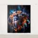 Ein sphärisches Objekt, bestehend aus verschiedenen Mineralien und Kristallen, einschließlich Blau, Weiß und Golden, mit komplizierten Texturen und einem Gesicht, das vom Akshobhya Buddha inspiriert wird. Die Mitte leuchtet mit einem warmen Licht und hebt die detaillierten Strukturen hervor.