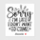 Entschuldige, dass ich zu spät bin, ich habe nicht aufkleber
