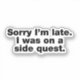 Entschuldige, dass ich zu spät bin. Ich war auf ei Aufkleber