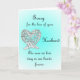 Diese Karte weist einen weißen und blauen Farbverlauf mit Engelsflügeln in der Form eines Herzens der Liebe auf, und die Formulierung "Sorry für den Verlust Ihres Ehemanns. Die, die wir in unseren Herzen für immer bleibe haben" Diese Karte kann personalisiert werden, indem man den Vers verändert, in dem "Denken Sie an Sie in dieser schwierigen Zeit" steht
