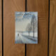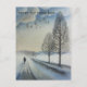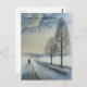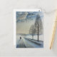 Gemälde einer Silhouette, die in einer Winterlandschaft in der Ferne abgeht, Himmelsvögel, Blau- und Weißfarben. Maßgeschneiderte Texte