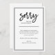 Diese einfache und elegante, schwarz-weiße Ankündigung ist eine Möglichkeit, sich bei Kunden oder Freunden zu entschuldigen, wenn Sie eine Veranstaltung oder Hochzeit zu stornieren, zu verschieben oder zu verschieben. Moderne, handgeschriebene schwarze Schrift verleiht eine stilvolle Touch, während der rechteckige schwarze Rahmen ein formales und klassisches Aussehen verleiht. Verwenden Sie diese Ankündigungskarten für jede Stornierung, Verschiebung oder Umschuldung.
