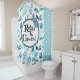 Karo aus diesem schönen Duschvorhang in verschiedenen aquamarinen Blautönen mit weißen Akzenten. Hübsche Blumen- und Polka-Punktmuster ergänzen einen zentralen Bereich mit den Worten "Relax and Entwind" in einem kühnen, spielerischen Schriftart. Wir haben sogar einen Schmetterling hinzugefügt!