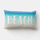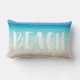Ideal für Ihren Erholungsraum - dieses Kissen mit Strandfotografie macht Ihren Zuhause zu einem großartigen Dekor. Dieses Kissen in Küsten- oder Strandhäusern zeigt das Wort "Strand", das über blauem Foto des Ozeans gedruckt ist.