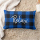 Entspannen Sie den Text auf Schwarz und Blau Karie Lendenkissen