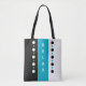 Mit diesem zweiseitigen Totbeutel mit kühlen, minimalen Farbtupfern in Azurblau, Schwarz und Weiß. Das Beispiel zeigt auf beiden Seiten das Wort "Entspannen", aber man kann es durch ein anderes kurzes Wort ändern, das auf beiden Seiten ein anderes Wort sein kann - denn Ihre Tasche sollte Ihrer Stimmung entsprechen. Diese Tasche aus Baumwolle sorgt für Abenteuer, Strandspaziergänge oder Lebensmittelgeschäfte und sorgt für coole Unterhaltung. Leicht, geräumig und leicht stilvoll - mit guter Energie auf beiden Wegen.