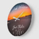 Eine lustige Uhr, die Sie daran erinnert, es einfach zu nehmen und die Sonnenuntergänge zu genießen. Weiße Schrift auf einem orangefarbenen Sonnenuntergang, wählen Sie einfach Ihren Stil und die Farbe der Hand.
