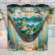 Diese skurrile Abbildung zeigt einen intimen grünen Frosch mit geschlossenen Augen, der in einer Hängematte zwischen zwei Surfbrettern an einem sonnigen Strand liegt. Die Ozeanwellen rollen sanft hinein, Möwen und Papagei fliegen über. Muscheln und tropisches Blattwerk schmücken den Sandstrand und schaffen eine Szene der ultimativen Entspannung in einem tropischen Paradies.