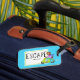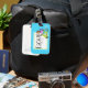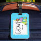 Hell farbiger Spaßtaschenumbau/-Gepäckanhänger mit einer großen Aussage über Reise!