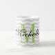 Entwerfen Sie Ihre eigene graue Zickzack Muster-Tasse des personalisierten Monogramms. Niedlicher mit Monogramm Kaffee-Tassenentwurf mit trendy grauen Zickzackstreifen. Niedlicher Typografie Geburtstag oder Gastgeschenk Hochzeitsgeschenkidee für Männer, Frauen, Freunde und Familie. Stilvoller Zickzackentwurf mit eleganter Skripttypographie. Kundenspezifische Farbe für Namensanfangsbuchstaben. IE apfelgrüne einzigartige coffeemugs auch verfügbar als große übergroße Schalen und groß gehen Reise-Tassen