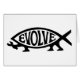 Entwickeln Sie Fische, eine Parodie der populären Jesus-Fische oder ichthys, Autoabziehbild. Ein Jesus-Fisch mit den Beinen und Füßen, die einen Schlüssel mit dem Wort "Evolution" nach innen halten. Vervollkommnen Sie für das atheistische, das agnostisch, Wissenschaftler, Biologen oder freien Denker in Ihrem Leben!