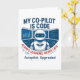 "Dieses Design der künstlichen Intelligenz verfügt über einen futuristischen Co-Pilot an den Kontrollen mit dem Zitat "Mein Co-Pilot ist Code". Ideal für Programmierer, KI-Enthusiasten und Technologieliebhaber, die sich KI-Autopilot, Upgrades und Innovationen im Bereich des Maschinenlernens zu eigen machen."