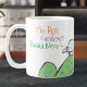 Tasse mit Gewerbe oder Beruf. Der sonnige Cartoon eines Schafes auf einem Hügel. Das Schaf sagt "Best Baa None". Design-Wiederholungen auf beiden Seiten