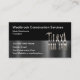 Cool Moderne Bauservice Visitenkarten in einem einzigartigen Design silberne Handwerkzeuge im Hintergrund und gebürstetes silberfarbenes Banner. Entwickelt für einen Bauunternehmer, Lieferant oder Zuhause zur Reparatur von Handyman. Auf hochwertigem Hochglanz-Visitenkartenpapier gedruckt.