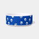 Diese mittelgroße Hundeschüssel hat einen blauen Hintergrund mit weißen Tatzendrucken auf ihr. Große Größe für Medium zur kleinen Hundevielzahl. Er hält 25 Unze Nahrung und ist weißes Keramikmaterial. Es ist für die Mikrowelle und die Spülmaschine auch sicher.