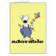 Ein entzückender weißer und brauner gepunkteter Hund mit Gesamten eines tragenden Denims des chubby Bauches fliegt einen Drachen und schwarzer Text liest "entzückendes" auf entzückenden HundeT - Shirts, -Hoodies, -bodysuits, -hüten, -Tassen, -karten, -aufklebern, -keychains und -mehr.