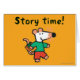 Maisy ist alles Lächeln, da sie ihr Bibliotheksbuch hält. Diese Illustration vom Buch "Maisy geht zu den Bibliotheks" (geschrieben von Lucy-Cousins und durch Candlewick-Presse veröffentlicht) Shows die klassische, entzückende weiße Maus, die glücklich ihr Zuhause des neuen Buches trägt!